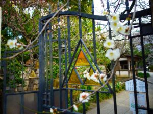 先ほどの小学校の先に、「源頼朝」の墓所がある。少し小高い丘の上に建てられている。写真はそのふもとから。春先に訪れたので、桜の花がわずかに咲いている。