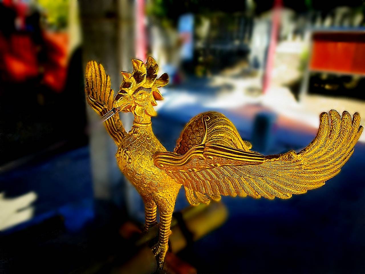 鳳凰型の吐水口からはセンサーで自動で水が出た。太陽の光を受けて綺麗に輝いている。